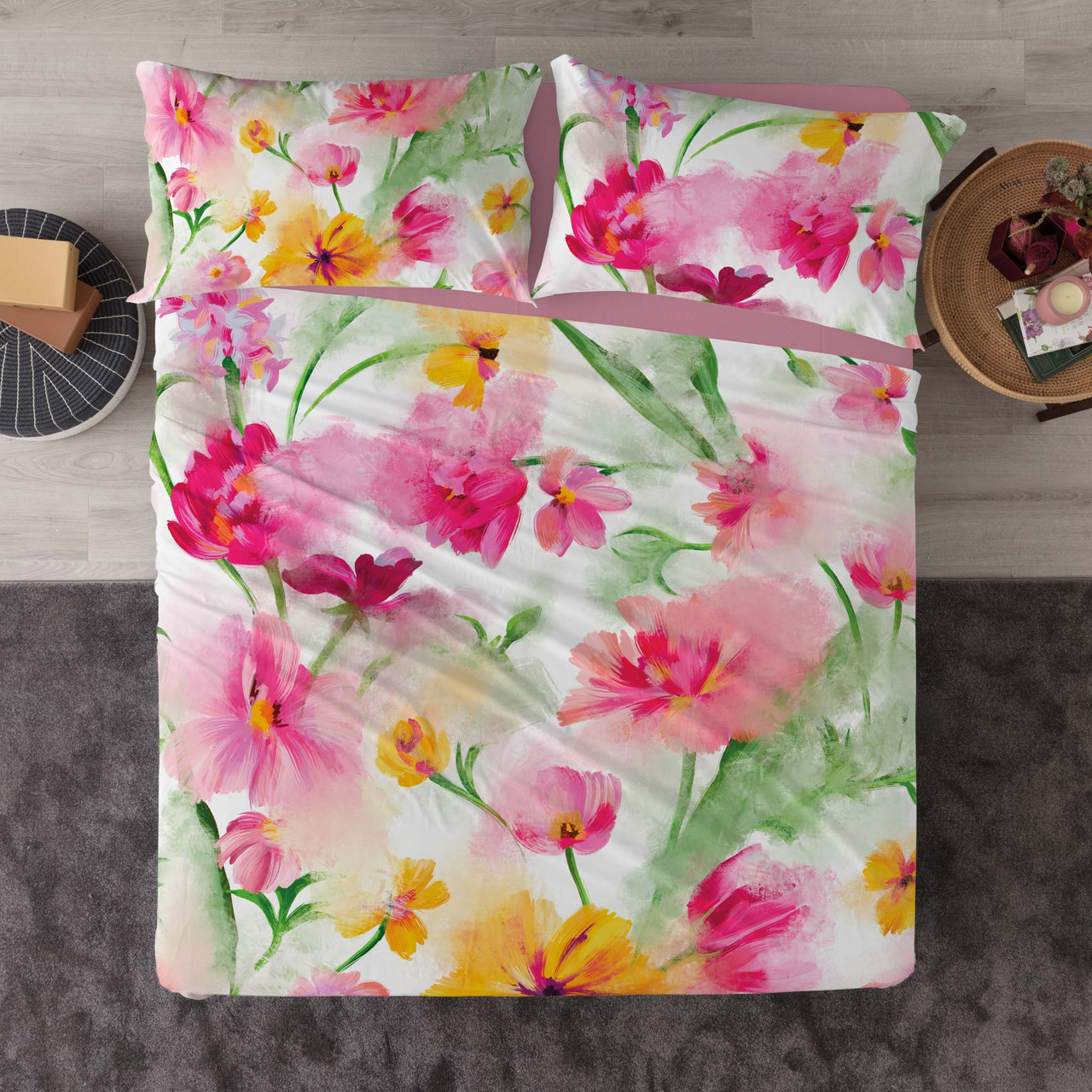 Completo lenzuola 100% cotone con stampa digitale, la confezione contiene lenzuolo sopra stampato con balza “copriletto”, lenzuolo sotto in tinta unita e 2 federe a sacco stampate.