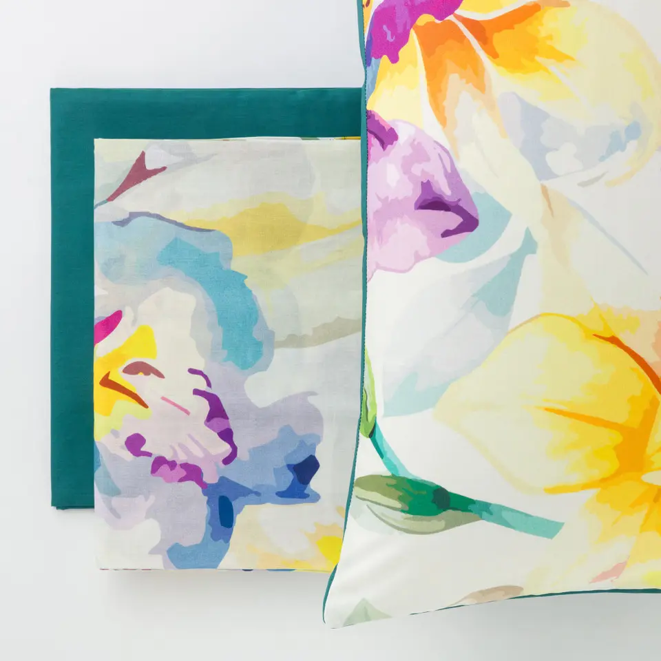 Completo lenzuola 100% cotone con stampa digitale, la confezione contiene lenzuolo sopra stampato con balza “copriletto”, lenzuolo sotto in tinta unita e 2 federe a sacco stampate.