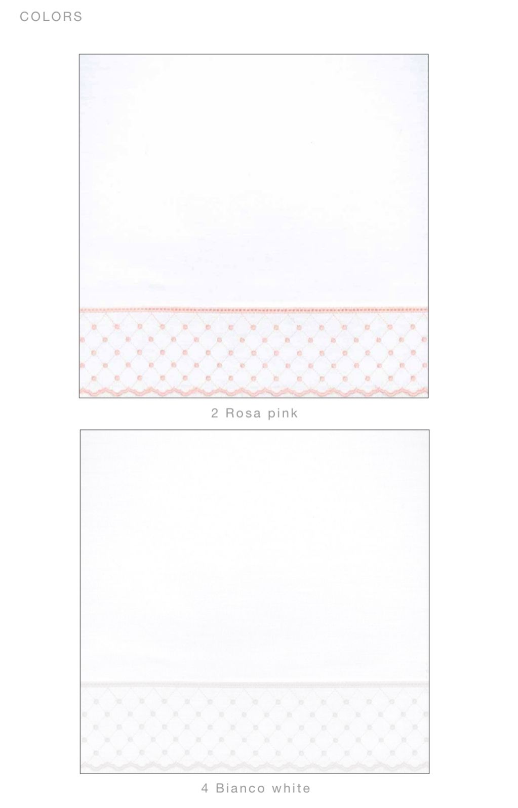 • lenzuolo sopra 90×120 cm tinta unita ricamato con fascia rifinita, orlo a-jour e logo ricamato