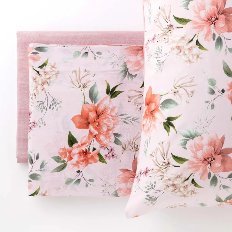 Completo lenzuola matrimoniale a fantasia, 100% cotone. Composto da: