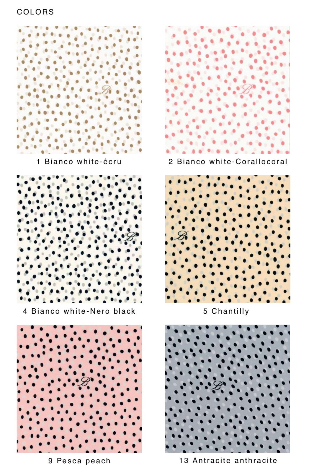 01 Bianco/Ecru, 02 Bianco/Corallo, 04 Bianco/Nero, 05 Chantilly, 09 Pesca, 13 Antracite |