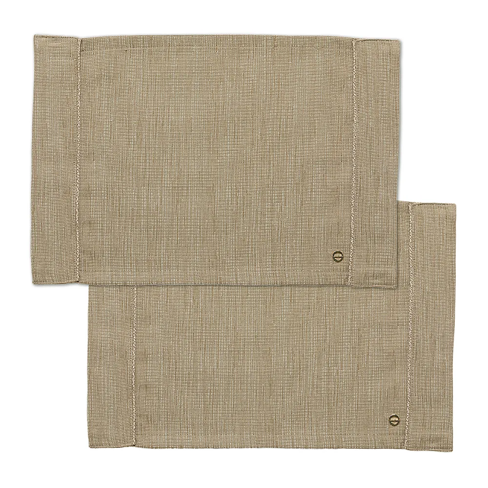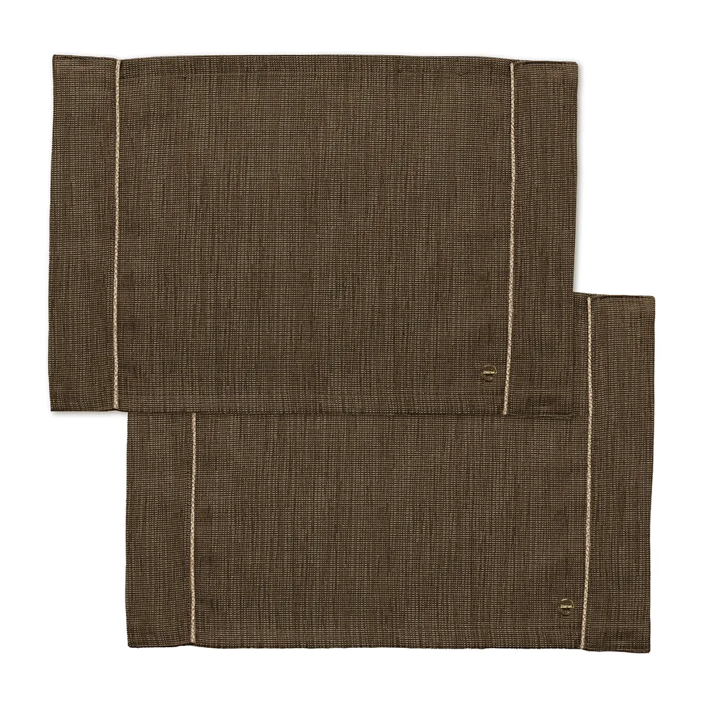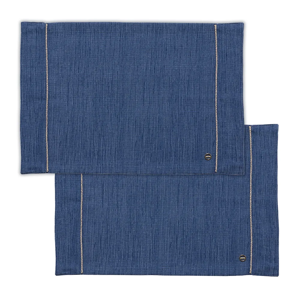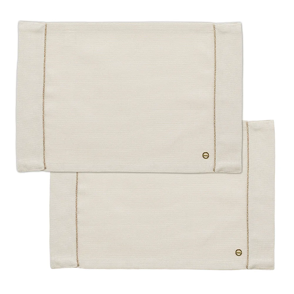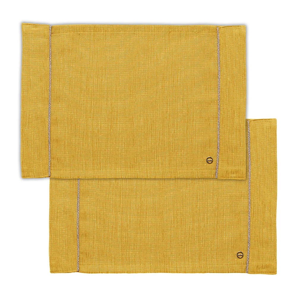 Set due americani in canvas impreziosito da profili personalizzati con l’iconica texture “OP” Occhio di Pernice e vitine dorate applicate a mano. Confezionato in scatola. Misure: set 2 americani 35 x 50 cm