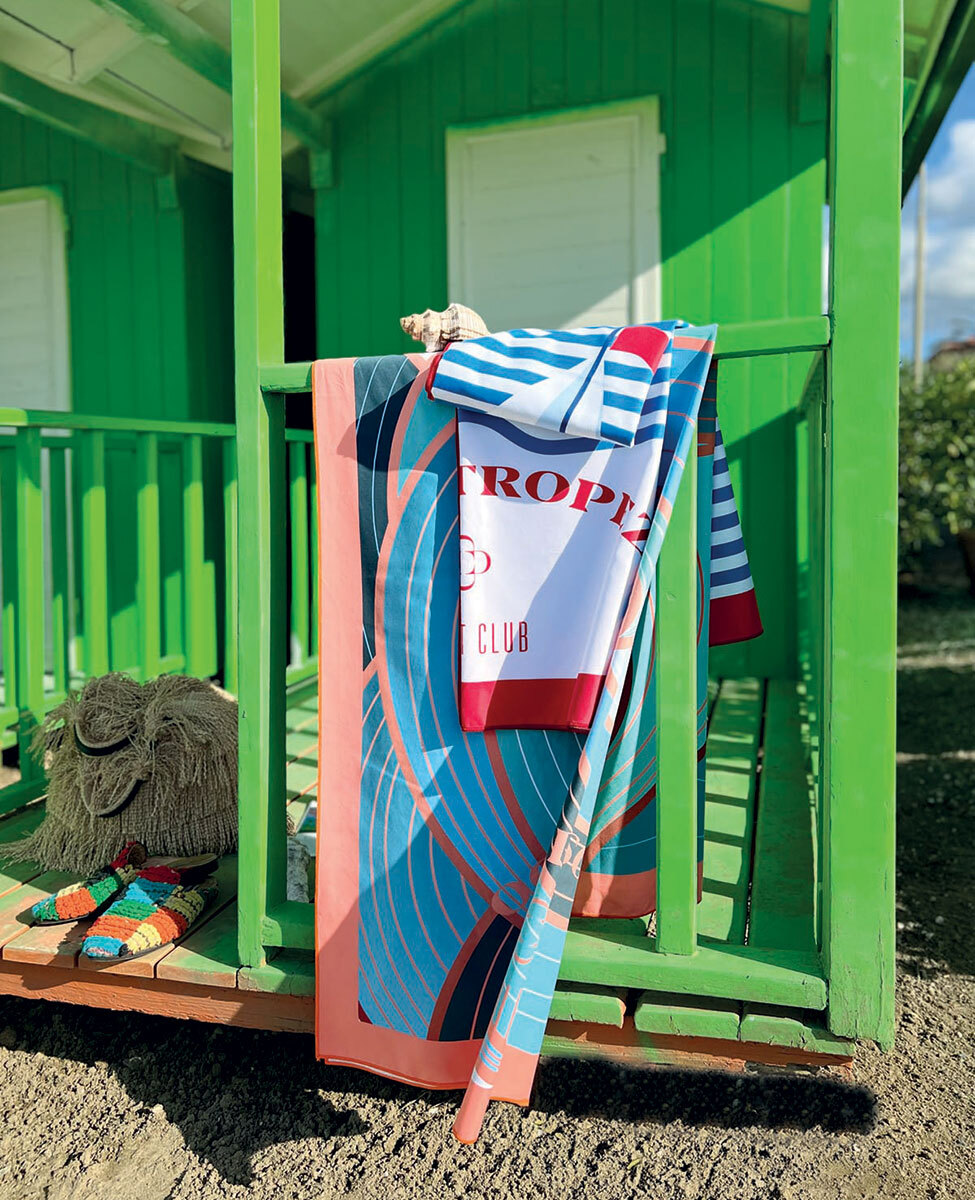 Telo mare in microfibra stampata con pochette coordinata. Misure: 100×180 cm Tessuto: 100% poliestere