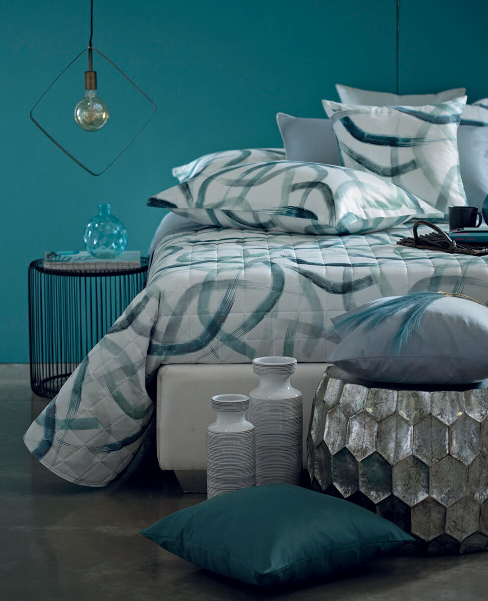Trapuntina matrimoniale con fantasia astratta su raso di cotone.