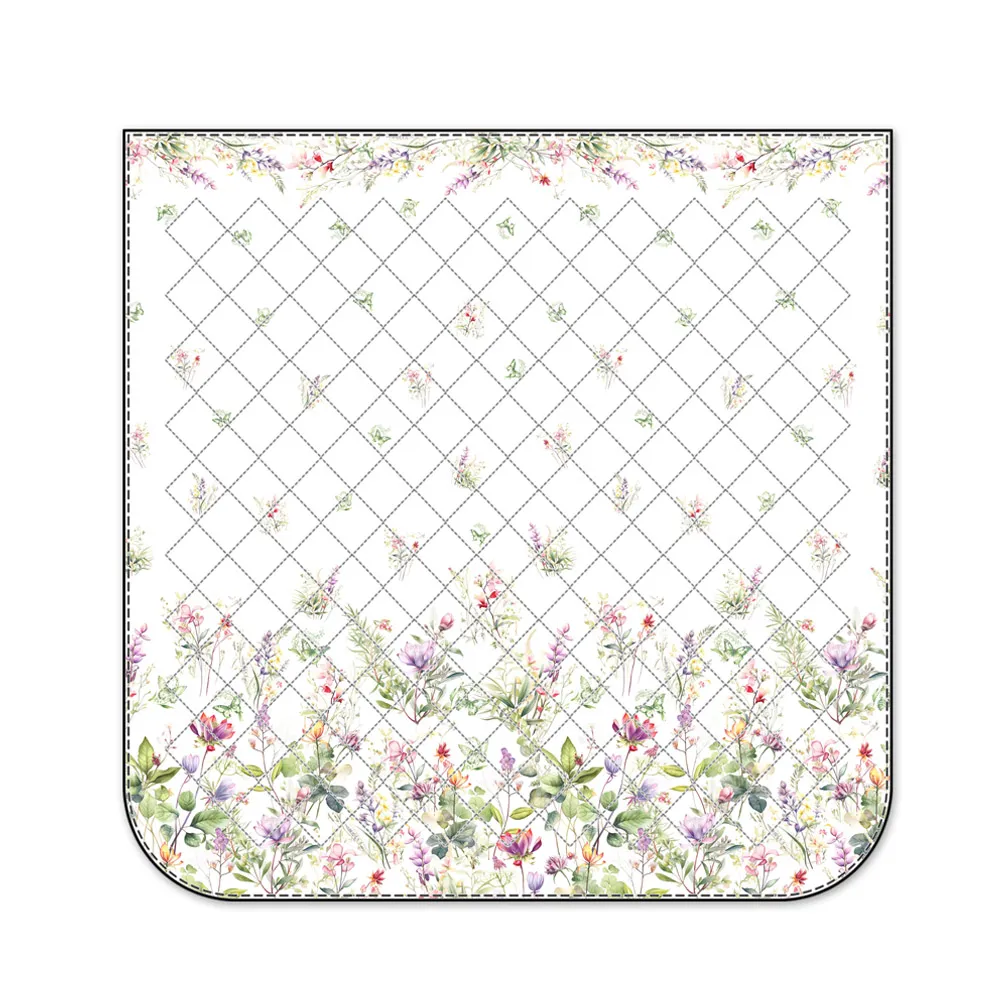 La trapuntatura piazzata esalta il disegno stampato in digitale con delicati motivi floreali.